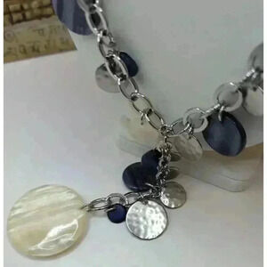 Chico's Blue silver Pendant Chain Multiple Charms Necklace Womens