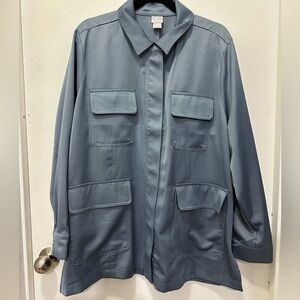 Chicos Blue Slate Safari Utility Style Jacket Sz 4