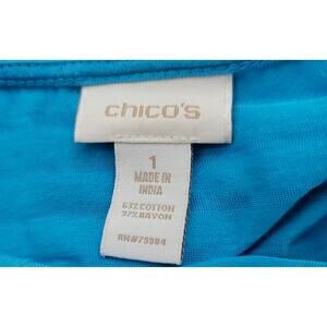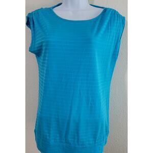 Chico's Blue Sleeveless Round Neck Top 1 M 8 10 Banded Waist Lightweight Soft