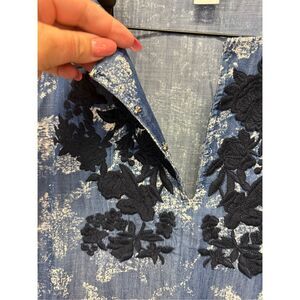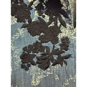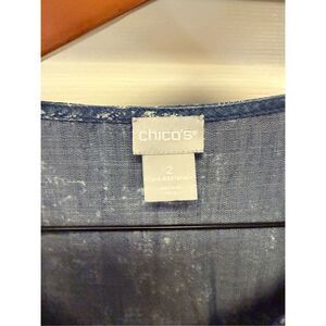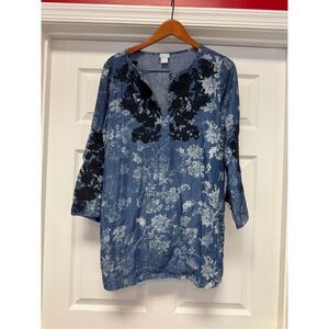 Chico’s Blue Soft Lyocell Floral Applique Tunic Blouse sz 2 or L EUC