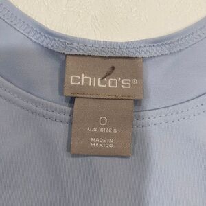 Soft and comfy Chico’s stretch tank top in a light periwinkle/sky blue color. Great for layering, everyday wear, or under cardigans. Chico’s size 0 (fits like a Small)