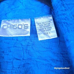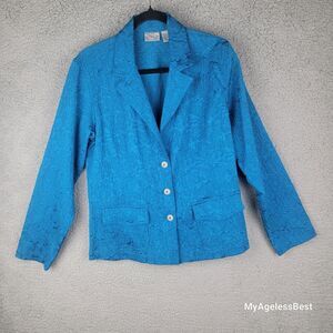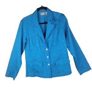 Chicos Blue Textured Crinkle Blazer Jacket Size 1 Medium Statement Fall Career