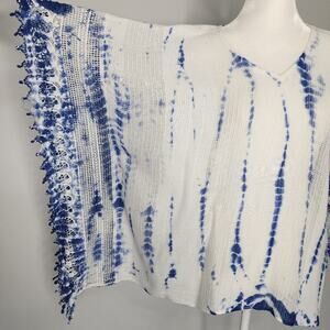 Chico's Blue Tie Dye Lace Trim Poncho Size Small Medium
