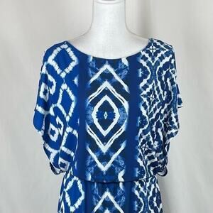 Chico’s Blue Tie Dye Party Cruise Coastal Grandma Dress NWOT