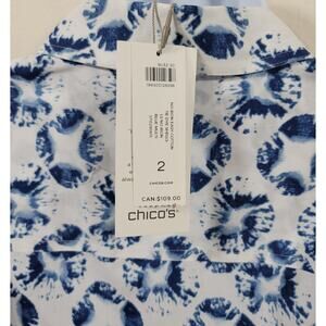 Chico's Blue Tie Dye Shells Henley No Iron Top 2 Large Lightweight New With Tags