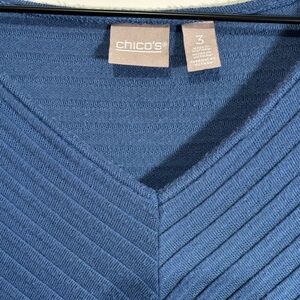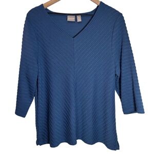 Chico's Blue V-Neck Ribbed Top 3/4 Sleeve Size XL