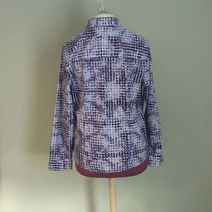 Simple button up in cool shades with a geometric pattern-perfect for the office or the weekend!