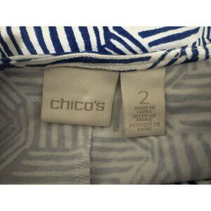 Chico's Blue & White Bryn Etched Tile Soft Knit Maxi Dress Sz 2 (M-12) Geo Print