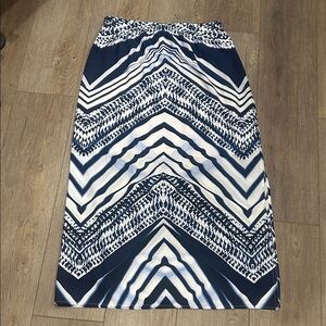 Chico's Blue White Chevron Side Split Skirt Nautical Beachy Size 1/Medium