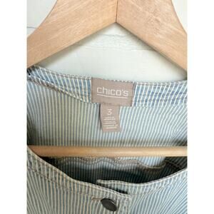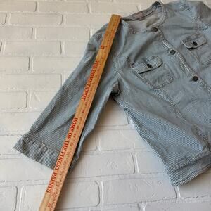 Chico's Blue White Pinstripe Denim Style Cotton Button Jacket sz 12/14 2