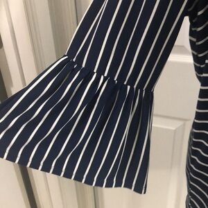 Chicos Blue White Stripe Bell Sleeve 2 M