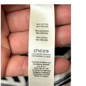 This Chico's sleeveless cardigan vest is the perfect addition to your wardrobe. With white base and blue stripes, an open neckline, and a relaxed fit, it's perfect for travel and casual occasions. Made from a blend of viscose and cotton, and featuring a knit fabric type, it offers both comfort and style.