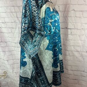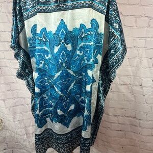 Chico's Blue and Black Patterned Kaftan poncho blouse sz small/medium