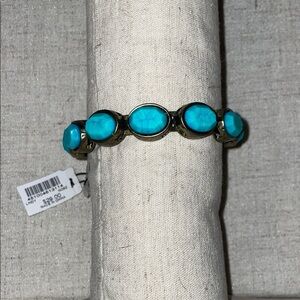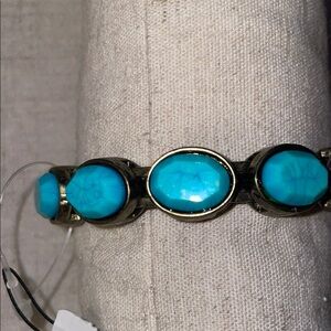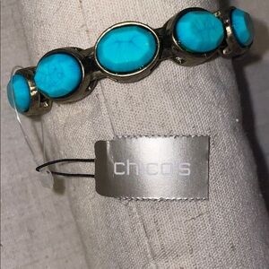 This stunning bracelet from Chico's showcases a harmonious blend of blue and gold, featuring a series of vibrant stones set in a sophisticated design. The bracelet's elegant craftsmanship highlights the beauty of the stones, making it a timeless accessory for any occasion.