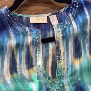 Chico's Blue and Green Beaded Tunic blouse