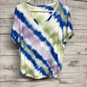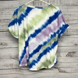 Chico's Blue and Green Tie-Dye V-Neck Top 3XL