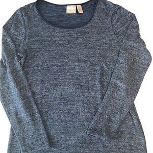 Chico’s Blue and Silver Metallic Round Neck Long Sleeves Pullover Size Small