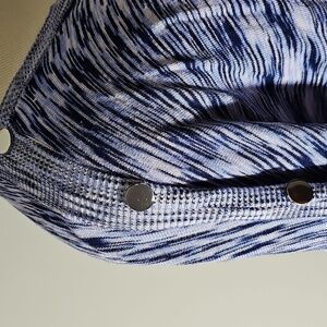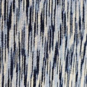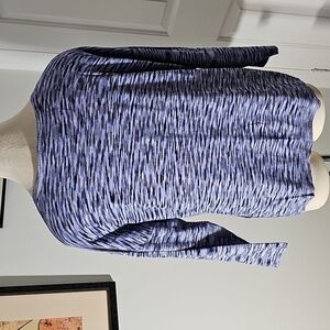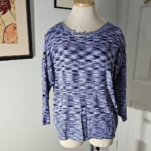 Chico's sweater with a blue and white pattern. Relaxed fit and soft fabric. Ideal for casual wear. 3/4 sleeves. Boat neck. 3 Siver accent buttons at the shoulders. Size Chico's 3(XL). Pit to pit flat measurement is 25.5 ". The sleeves are 14". The top to bottom length is about 25". Excellent quality and condition.