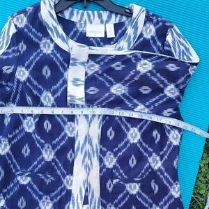 Stylish blue and white patterned jacket. Features a unique geometric design. Perfect for casual or formal wear.