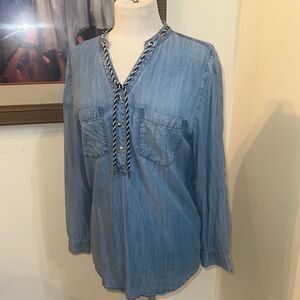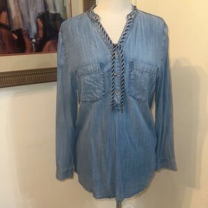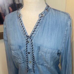 Chico’s Blue Chambray Women's Top w/ Rope Detailing Size 1-Medium