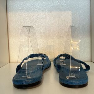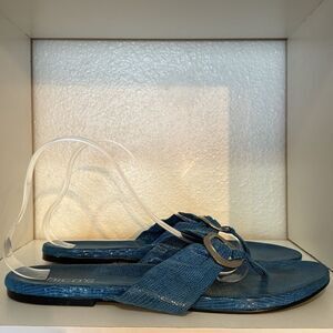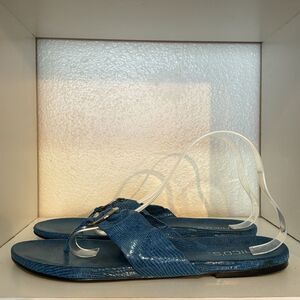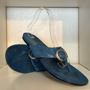 Chicos Blue Snakeskin Print Thong Silver Ring Detail Flip Flop Boho Sandals