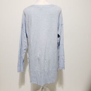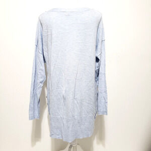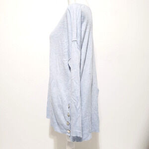 Chicos Boatneck SIZE 2 Medium Blue Lightweight Sweater Button Sides Pullover Top