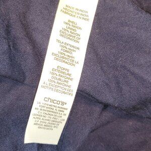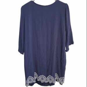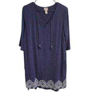 Chico's Bohemian Dress Embellished Hem Tunic Dress Lined Navy Blue Size 2 Large