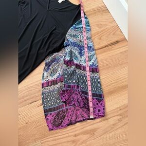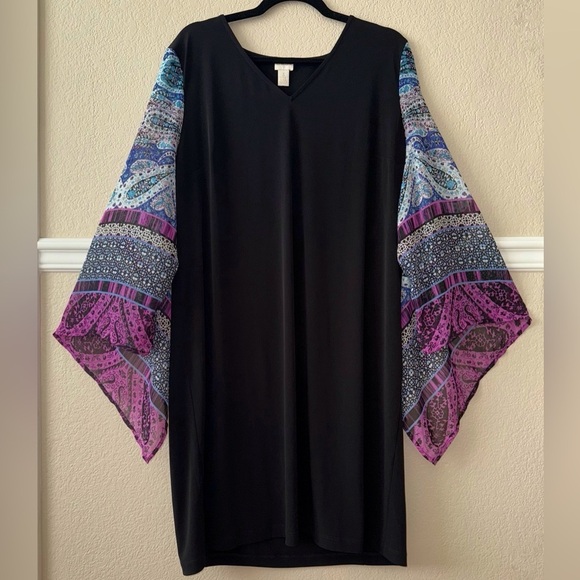 Chico’s Boho Flowy Sleeve Mixed Media Black Knee Length Dress Size XL