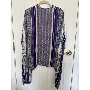 Chico’s Boho Open Front Kimono Poncho Cardigan Size Large/XL Paisley Coastal