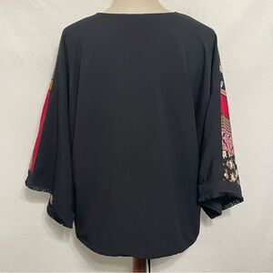 Chico’s Boho Patchwork Kimono Jacket Zip Front Waist Tie Size 1 M