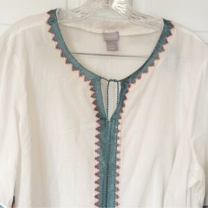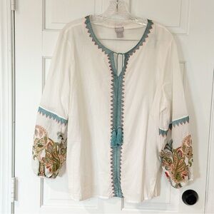 Chicos Boho embroidered beaded peasant blouse size 3 which means XL