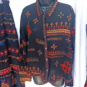 Chico's Boho long skirt and blouse, nwt, Size 2 (12), Beaded, Sequins, Tiered
