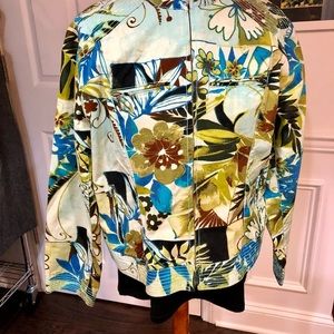 Chico’s Bright and Bold Floral Printed full Zip Front Jacket