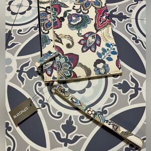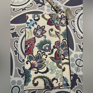 Chico's Bold Flowers Pouch Zippered Wristlet Pouch, Cool Multi, NWT
