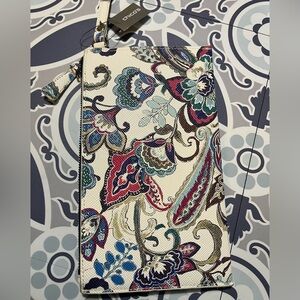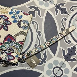 This chic wristlet from Chico's features a vibrant paisley print in striking red and blue hues, perfect for adding a touch of elegance to any ensemble. Its structured design and artistic pattern make it a standout accessory for any occasion.