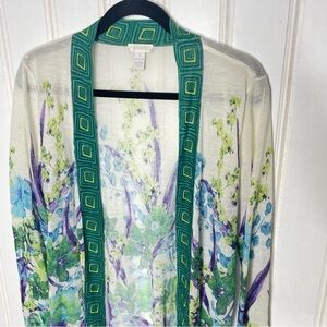 Chicos Botanical Border Brooke Cardigan Sz M/1 448