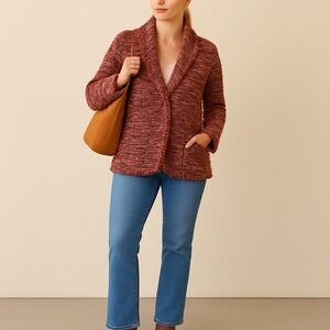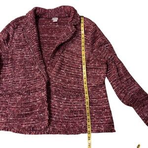 Chico’s Bouclé Knit Blazer Jacket Burgundy Marled Fringe trim. SZ 3