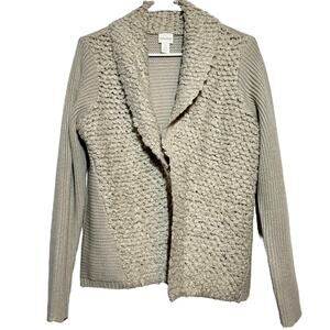 Chico's Boucle Cardigan Wool Open Front Ribbed Knitted Cream 1 Medium
