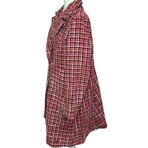 Stay stylish and warm with this chic pink plaid coat. Perfect for any occasion.