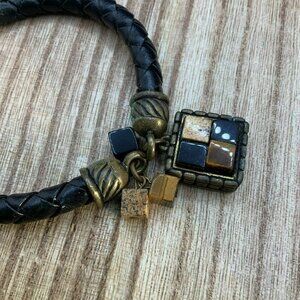 Chico's Braided Leather and Stone Wrap Bracelet