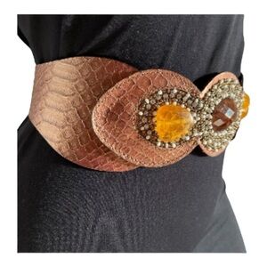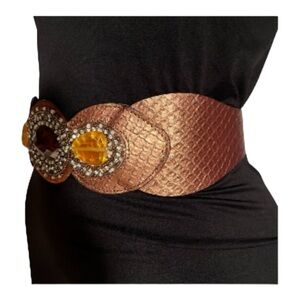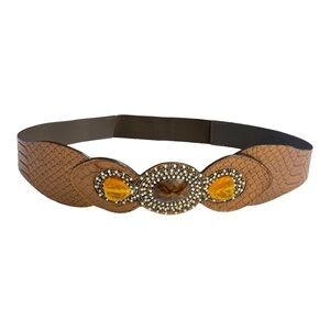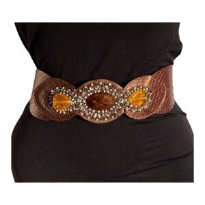 Chicos Brand Women’s Bronze Snake Brown Leather Belt Elastic Band Size Medium