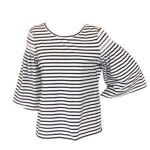 Chico's Breton Stripe Knit Top Sz 2 (L/12) Smock Shoulder Bell-Flare Sleeve 296H