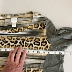 Chico’s Brie Cheetah Stripe Knit Top Green Size 1