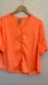 This vibrant orange Chico’s blouse features a lightweight, airy fabric with soft texture and beautiful ruffle trim detailing. Designed with a flattering V-neckline and short sleeves, the top includes delicate ruffled accents along the neckline, front placket, sleeve seams, and cuffs for a feminine touch. The relaxed silhouette provides comfortable wear and easy movement, while the slightly curved hem adds a polished finish. Perfect for pairing with jeans, trousers, or skirts for a bright, stylish everyday look.