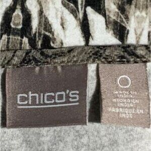 This Chico's top is an exquisite blend of paisley and leopard prints, offering a unique and artistic flair. The keyhole neckline adds a touch of elegance, while the 3/4 sleeves provide comfort and style. Crafted to fit a size small, this top is a delightful addition, embodying both fashion and function.