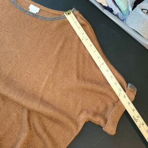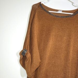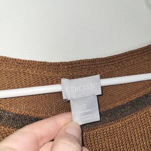 Chicos Brown Beaded Linen Blend Short Sleeve Sweater 2 Large