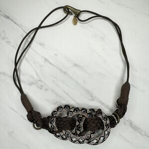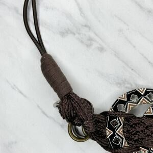 Chico's Brown Boho Stretch Cinch Belt Geometric Pattern M/L ✨