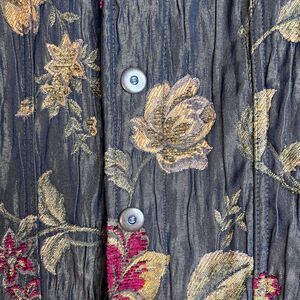 Chicos Brown Floral Tapestry Crinkle Brocade Button Front Blazer Size 2 (MD)