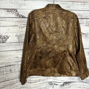 Chico’s Brown Gold Metallic Animal Print Zip Jacket Stretch US-L