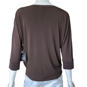 Chico's Brown Knit Kit Zoey Zipper Shoulder Top Size 1 (Medium) NWT. New unused/unworn pristine condition. Take your look beyond basic with this 3/4-sleeved top. This comfortable relaxed fit top has zippers on the shoulders for a hint of edgy style.